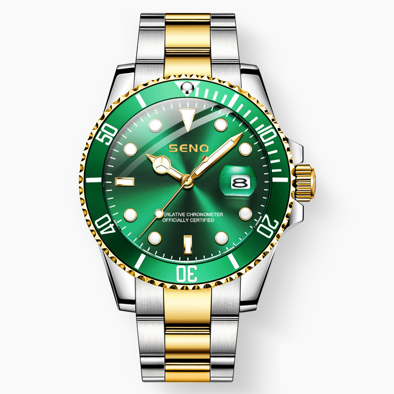 Grön lyxklocka för män – vattentålig och trendig design